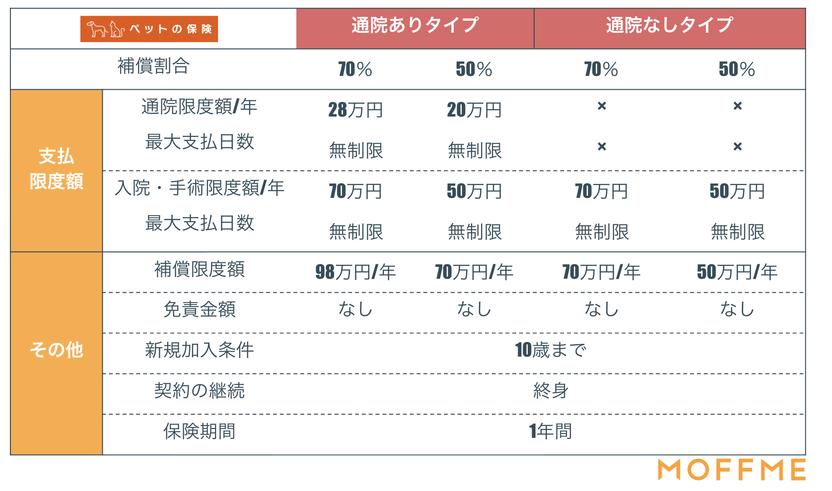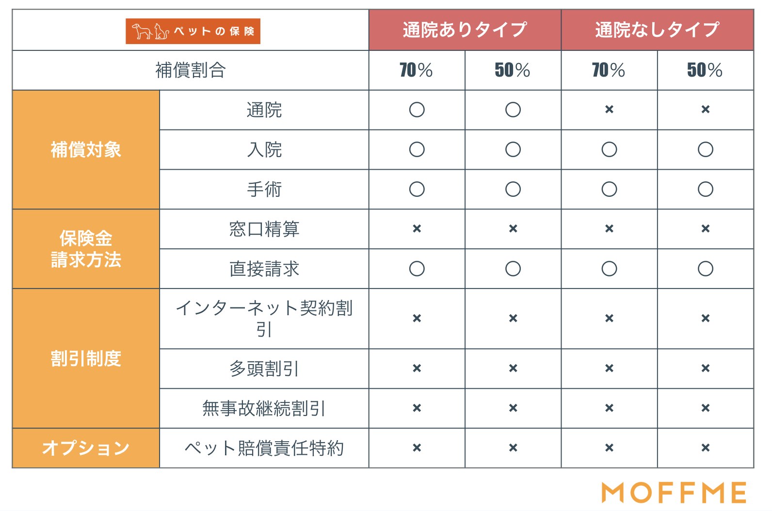 また、通院補償の有無に関わらず補償割合を50%と70%から選ぶことができるので、保険料やペットの健康状態に合わせて補償割合を選ぶことができ無駄がありません。